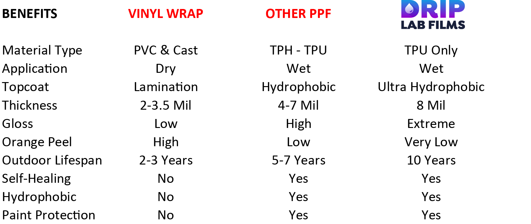 At Drip Lab Films, we embarked on our journey of research and development back in 2022, driven by a passion for automotive perfection. Drawing insights from the industry’s leading manufacturers and experts, we delved deep into the world of automotive paint protection films. Our mission was clear: to craft a product that not only met but exceeded the expectations of automotive enthusiasts worldwide.